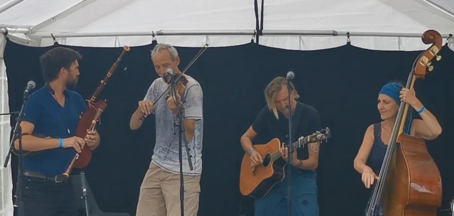 Toch kunnen we met terugwerkende kracht zeggen dat we er waren, want op de Folkwoods reünie hebben we een set gespeeld. De sfeer en het weer waren geweldig, dus na onze set konden we onversterkt temidden van de dansers nog doorgaan.